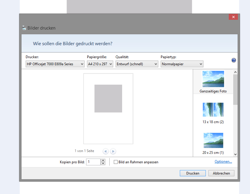 Bilder in verschiedenen Formaten drucken.